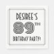 This 1920s/1930s style inspired eighty-ninth birthday party paper napkin design features an editable name, an intricate art deco style inspired number “89th”, the message “BIRTHDAY PARTY!”, and a multi-line border. Paper napkins like these might be used at a party held in celebration of somebody’s 89th birthday. [~Z0000613]