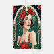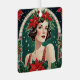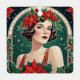 A stylish retro Christmas ornament, featuring a picture of an elegant lady in Art Deco inspired style, with holly and red poinsettia flowers. Personalize the reverse side of the decoration with your own message as a thoughtful festive gift.