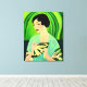 Art Deco Lady with a Fan in Jade Green Canvas Print