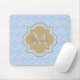 A stylish light blue art deco fish scale pattern mousepad with a tan quatrefoil badge you can personalize by easily adding your monogram and name. This is part of the Little Boy Blue Fishcale Warm Sand Monogram Spring Collection.