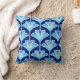 Art Deco Lily, Cobalt Blue, Aqua and White Throw Pillow