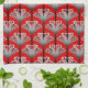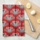 Art Deco Lily, Deep Red and Grey / Grey Kitchen Towel