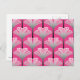 Postcard in a reproduction of a stylized, Art Deco lily, wallpaper pattern - a gradient of light silver grey / grey to dark graphite on a deep fuchsia pink background, accented with lighter pink