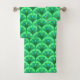 Serviette sertie dans une reproduction d'un lys Art Déco stylisé, motif de papier peint - un dégradé doux de vert foncé à moyen, accentué de bleu turquoise / paon, sur un arrière - plan vert jade clair