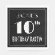 This 1920s-1930s style inspired tenth birthday celebration paper napkin design features a custom name, an intricate art deco look inspired number “10th”, the message “BIRTHDAY PARTY!”, and a multi-line border. The background is coloured black by default, but it can be customized to a different colour, if desired. Luxurious birthday themed paper napkins like these might be used at a birthday party in celebration of somebody’s tenth birthday. [~Z0000612]