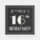 This 1920s-1930s style inspired sixteenth birthday celebration paper napkin design features a customizable name, an intricate art deco style inspired number “16th”, the message “BIRTHDAY PARTY!”, and a multi-line border. It features a black-coloured background by default, but it can be customized to a different colour, if desired. Elegant paper napkins like these might be used when hosting a birthday party for somebody in celebration of their 16th birthday. [~Z0000612]