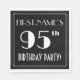 This 1920s/1930s style inspired ninety-fifth birthday party paper napkin design features an editable name, a fancy art deco style inspired number “95th”, the message “BIRTHDAY PARTY!”, and a border pattern consisting of lines. It features a black-coloured background by default, but it can be customized to a different colour, if desired. Paper napkins like these might be used at a party for somebody who is celebrating their ninety fifth birthday. [~Z0000612]