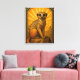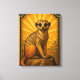 The meerkat’s composed posture and forward gaze evoke themes of watchfulness and quiet strength, while swirling plant motifs and a rich palette of golds, greens, and blues add depth and decorative flair. Framed with a symmetrical border, this piece is perfect for eclectic interiors, nature-inspired decor, or as a unique gift for animal lovers and design enthusiasts.