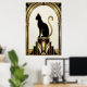 Elegance in simplicity. A slender black cat silhouette is perfectly centred within a massive white and gold archway. This high-contrast masterpiece focuses on clean lines and architectural framing, providing an ultra-sophisticated touch to minimalist luxury interiors.