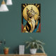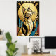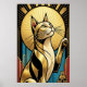 A bold, close-up interpretation of a tuxedo cat rendered in shimmering gold and deep black. Framed by a massive golden halo and clean vertical lines, this piece offers a contemporary twist on classic Art Deco luxury for the modern feline enthusiast.