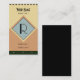 Art Deco design business card with customizable monogram initial. Customize all text lines with your information. Add two letters to monogram if desired and make them a bit smaller. Art deco motifs and colours from the 1920s and 30s add style.