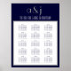 Grey, Navy Blue and White Art Deco Monogram Wedding Seating Chart for 150 people with 10 per table. Template Wedding Seating Plan Poster. Simple design with art deco fonts. Change initials in the monogram, the bride and groom names and add your table and guest names for the seating plan. Want a different colour please contact luxuryweddinginvitations@gmail.com