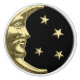Classic Art Deco moon and stars design knob in brushed gold with an enamel / onyx look black background