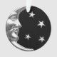 Classic Art Deco moon and stars design in brushed metallic silver, with a black onyx / black enamel look background