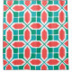 This shower curtain has an art deco design of hexagons, pentagons, squares, diagonal lines that look like a mosaic.
