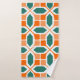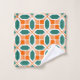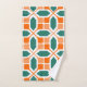 This towel set has an art deco design of hexagons, pentagons, squares, diagonal lines that look like a mosaic.