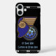 Against a shiny black background, the humourous trompe l'oeill adorning this iPhone 16 case cover will have you wondering whether the royal blue & gold image is the front end of a classic touring car - or a profile of the god Mercury overlapping a fancy wheeled tire? With 2 custom fields for name, etc., the original digital painting by IconDoIt was, inspired by one of the great 1930's Vintage Auto Rally Posters.