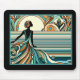 An Art Deco Style Mouse Pad In Teal, Black And Orange