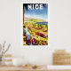 A Paris Lyon Marseille (PLM) Années 1920-1930 Annonce de voyage art déco vintage, promouvant la vie à Nice sur la Côte d'Azur : palmiers, belle femme, voitures classiques merveilleuses, mer, montagnes. (Les Alpes)