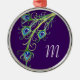 Art Deco Nouveau Style Peacock Feathers Swirl Metal Ornament