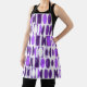 This apron has an art deco design made of ovals and half ovals in white and shades of purple.