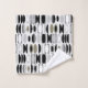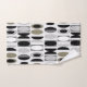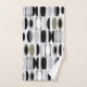This towel set has an art deco design made of ovals and half ovals in black, white, and shades of grey.