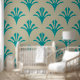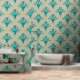 Art Deco Pattern 02 - Teal on Off-White Wallpaper