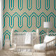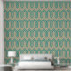 Art Deco Pattern 05 - Teal on Off-White Wallpaper