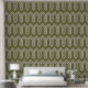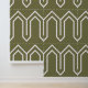 Art Deco Pattern 05 - White on Camouflage Green Wallpaper
