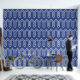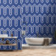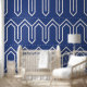 Art Deco Pattern 05 - White on Prussian Blue Wallpaper