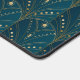 Art Deco pattern with gold geometric shapes on a deep teal background, featuring arch motifs and dotted accents, creating an elegant vintage feel.