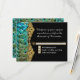 Matching RSVP Response Card. Very Glamourous, gold glitter look Art Deco frame with collaged peacock feathers and peacocks. A wonderful mix of old world style and bold, colourful modern graphic design. NOTE: This is a flat printed image, there is no gold metallic glitter elements. This wedding collection was inspired by Old Hollywood and her heyday glam era. A wedding invitation set that is perfect for elegant, sophisticated, modern formal or black tie events and wedding celebrations. A classic, beautiful swirling scroll flourish etchings in rich teal and aqua are part of a collage background that sets off the lone peacock who looks back over his shoulder to the invitation text. On the reverse side a simple, solid black colour - you may select any colour you wish from the background colour menu. A traditional text layout for your invite wording and information completes this vintage retro design. A gorgeous, unique and pretty design for Indian weddings, and the most discriminating bride.