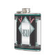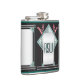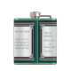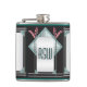 This personalized hip flask coordinates w/ TheMarryingType's "Art Deco Pink Pussy Willow" Wedding Series, the front features a centred silver toned rectangle adorned w/ aqua leaded glass, turquoise stone framing, tall pink pussy willows & silvery support bars all set on a black background. Custom text fields for recipient's initials on front & on back are fields for date, a personal message, salutation & givers name(s).
