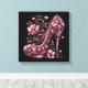 Art Deco Pink Stiletto High Heels with Hearts and Flowers Canvas Print