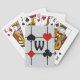 personalized Playing Cards features an Art Deco inspired original design w/a card playing theme composed of bright red & black card suit symbols (diamond, club, heart & spade) centred where the black thick & thin horizontal & vertical lines of a grid meet, w/a large custom text field for your monogram in the centre.
