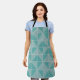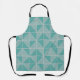 This apron has an art deco design of squares divided in half by diagonal lines of silver. The squares are then pieced together on a field of turquoise.