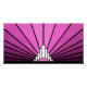 Un motif de style art déco classique en rose. Un motif emblématique du soleil se levant derrière un bâtiment en forme d'art déco stylisé. Un design simple mais élégant, fidèle à l'époque.