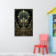 Complete your celestial sanctuary with the "Aura Celestial" Sacred Lotus Art Deco poster. This breathtaking design features a vibrant golden and teal lotus flower blossoming beneath a complex celestial compass starburst, all set against a rich obsidian black background.
