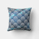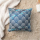 Art Deco Scales Blue Navy Ocean Geometry Marble Throw Pillow
