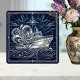 Art Deco Silver boat Ocean Waves Starry Night Tile