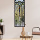 art deco stained glass window poster FROM 8.99. If you would love to have some style added to your walls but dont want the mess or expense of a new window then why not buy one or two of these wonderfully realistic art deco stained glass window posters? Design is based on a photo of an original art deco window with the stylistic features and colours of blue, greens and golden yellows and bronzes in a geometrical frame. Complete with what appears to be reflections of light on a garden seen through the mottled stained glass this is a truely classic image to add interest to your rooms and home decor. This optical illusion is bound to brighten your house design.