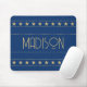 Add a touch of Art Deco style with this personalized mousepad! Rows of stars paired with retro typography. Customize the template with a name or location. A stylish gift for friends and family! Printed colors: navy blue and gold.