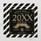 Style Art Déco Noir et or Nouvel An Invitation Carte et Enveloppe Plat. Un arrière - plan rayé noir et blanc audacieux avec lettrage noir et or formel. Parfait pour un événement de cravate/champagne noir. Conçu par Jacqueline. Personnalisé par Vous.