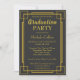 Simple and classy Gatsby inspired gold border graduation party invitation that can be personalized. Michigan blue. If you have a desired school colour you can contact me.