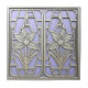 This elegant design moves slightly from pure abstraction to incorporate a stylized floral motif, reminiscent of classic Art Deco and later Mid-Century Modern sensibilities. The composition features two symmetrical lilies framed by strong, rectilinear and arched metal-look structures. Set in a pastel violet background, detailed silver-tone lilies and framework create a sophisticated, high-relief effect. This piece is ideal for adding a touch of timeless, structured elegance to any tile display or accent area. Search ID1196 to see other designs in this series. Note: design adapted from generative content.
