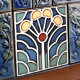 Channel the bold sophistication of the Art Deco era with this striking ceramic tile. The design features a perfectly symmetrical, stylized tree motif with a sunburst or fan-like spread. Deep navy blue and dusty sage green provide a cool, elegant base, beautifully contrasted by warm, amber-yellow blossoms and a central, eye-catching terracotta red circle. Each coloured section is crisply defined by raised, off-white lines with a subtle bronze edge, reminiscent of classic cloisonné or stained-glass artistry. This tile is a testament to geometric precision and organic inspiration, making it a perfect accent for a historic home or a touch of vintage flair in a modern space.