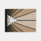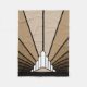 An iconic pattern of the sun rising from behind a stylized art deco shaped building. A simple yet elegant design, true to the era.