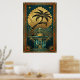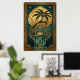 Art Deco Symmetrical Tree of Life Gold Teal Poster