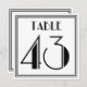 Art Deco "Gatsby" inspired frame elegantly surrounds this table number card, perfect for both parties and wedding receptions needing table numbers. Set the mood in style. Purchase as many cards as you need, they are pre-designed for you, saving you the need to try to customize them yourself.