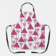 This apron has an art deco design of triangles strung on lines in two shades of pink.